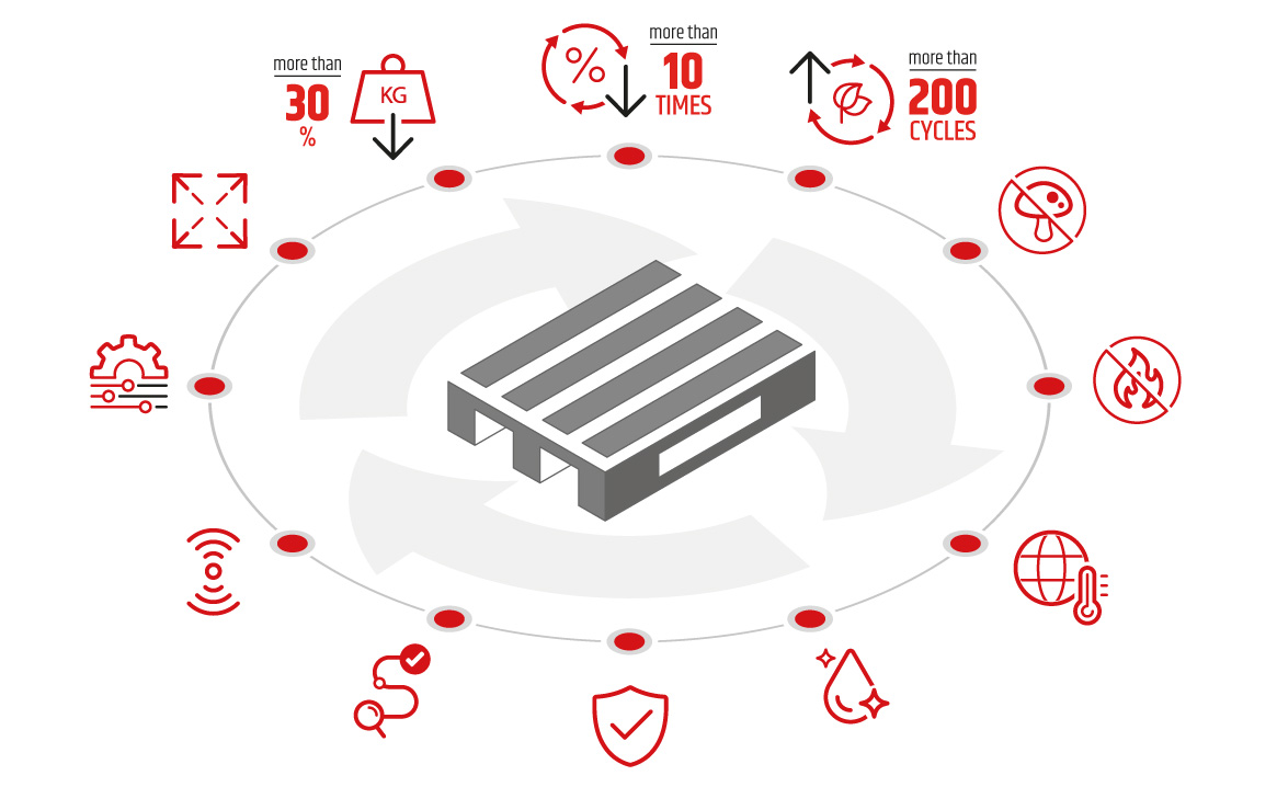 METYPAL is designed from advanced materials to lower transportation costs, easier manual handling and safer workplace.