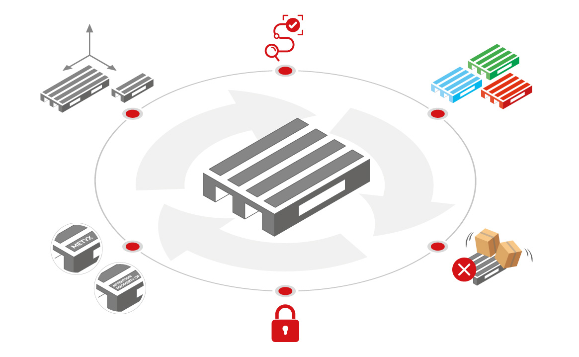 METYPAL comes equipped with IoT (Internet of Things) technology, allowing for real-time monitoring of goods as tracking temperature, humidity, location of the pallet, ect.